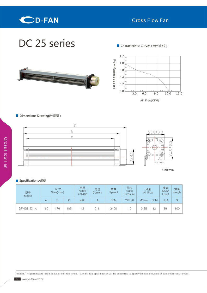 DC FAN横流风扇025规格